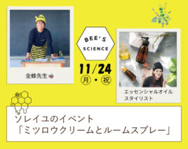 2025年10月29日 イベント📣ソレイユのイベント11.24「ミツロウクリーム🍯とルームスプレー🍃」【ご案内】 ◆イベント内容 ○ミツロウを使った万能ワックス(クリーム)、ミツロウラップ ○天然アロマオイルを使ったスプレー、ロールオンタイプのオイル「植物が持つ力🍃」には、抗菌作用・抗ウイルス作用・防虫効果・消臭効果など…