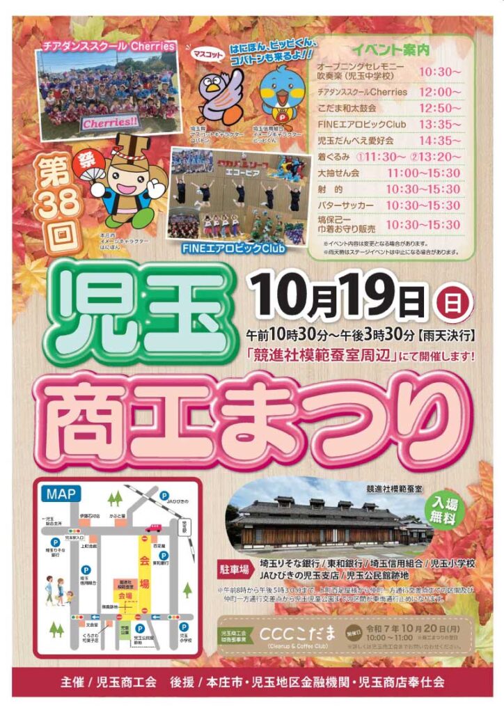 さて、この時期になるとヨシケンがある児玉町では恒例の「児玉商工まつり」が開催されます。 今年で38回目となり、約40店舗の即売会や展示会などが出店され、イベントも盛りだくさん♪毎年多くの方が足を運んでくださり賑わいます✨
