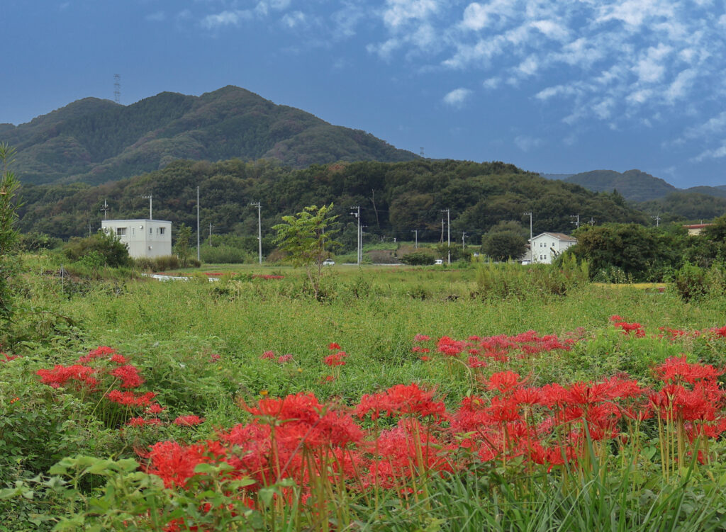 [陣見山と水押川の彼岸花]