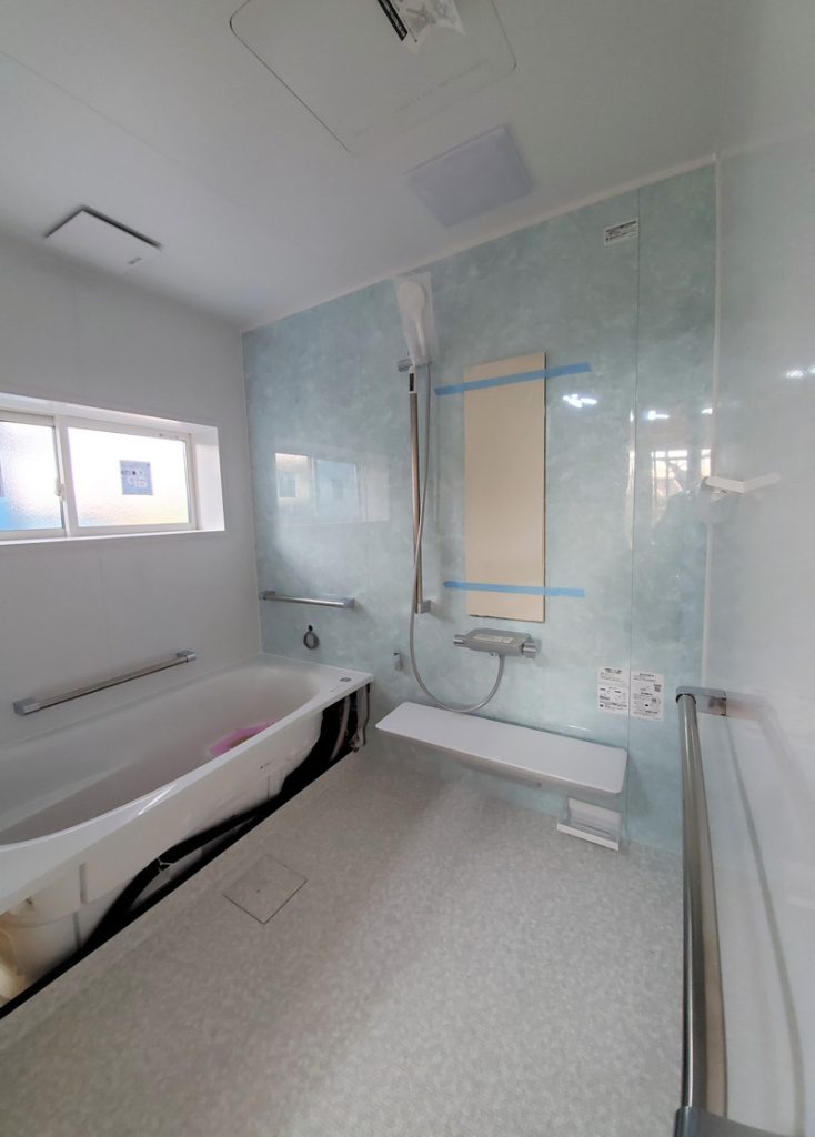 洗い場が広くなるだけではなく、開口部が広くなります。段差もなくフラットなので、車椅子のままでもスーッと入れますね!