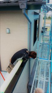 劣化した表面の塗料を落として、塗装の準備をしています。(和田さんの受け売り)だそうです。我が家もそろそろ塗り替えないといけませんので、現場をしっかり見て、DIYの参考にさせてもらおうと思います(╹◡╹✿)♪