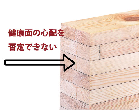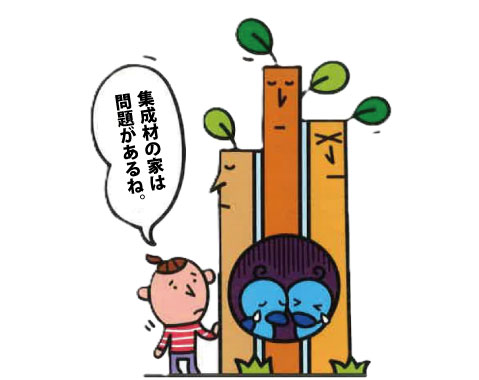 集成材の接着剤に含まれる化学物質などがシックハウス症候群の原因と言われています。