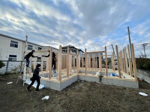 明日は2階部分が始まります。建て方の最後まで安全第一で工事を進められるよう、気持ちを入れなおして頑張りましょうo(-`д´- o)ガンバッテ!!