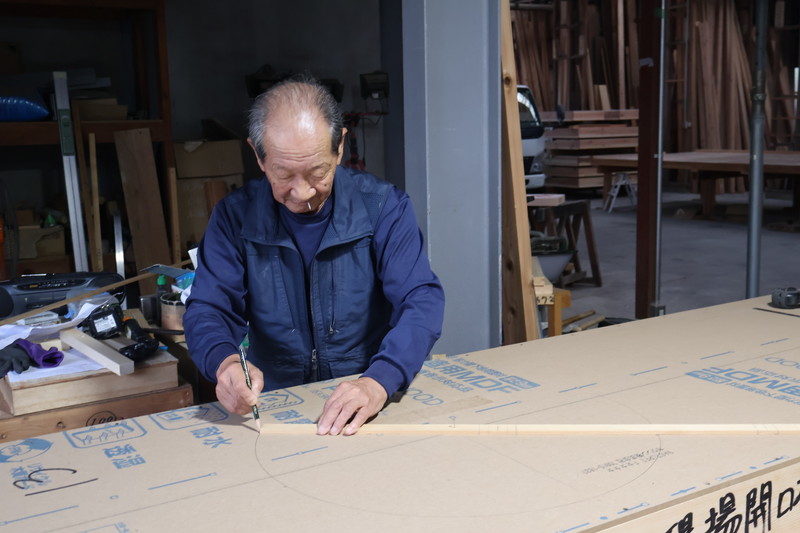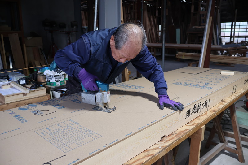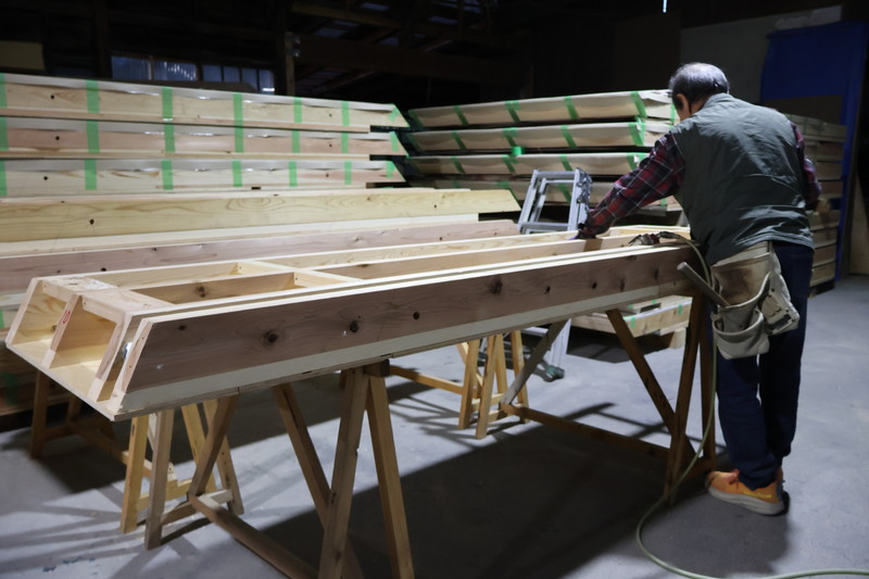 工場ではN様邸のパーツが次々と製作されており、なんと棟梁お一人でこなしています。