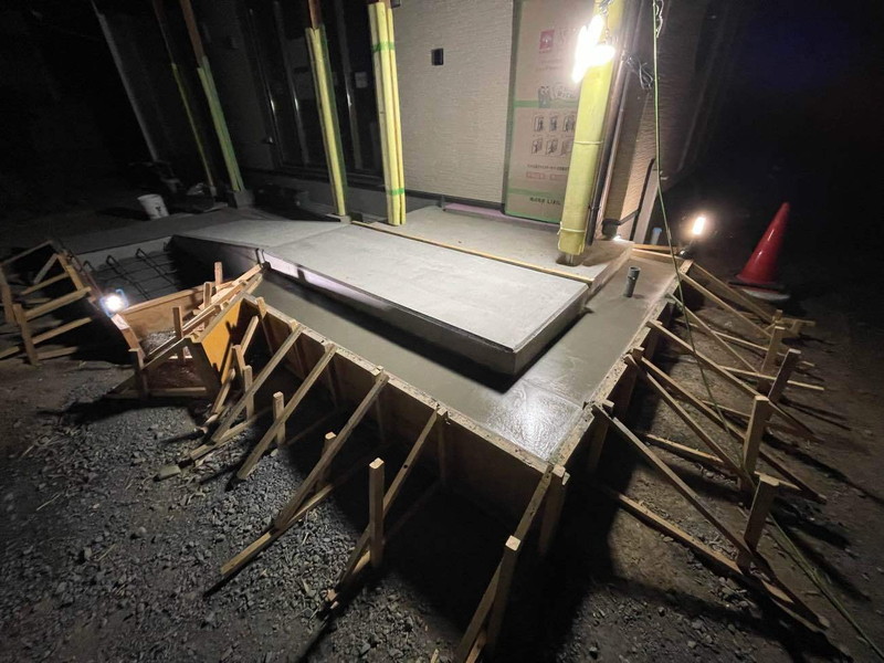 タイルの基礎工事だけ済んだ玄関周り、タイルが入ったらまた印象がガラリと変わるんでしょうね!