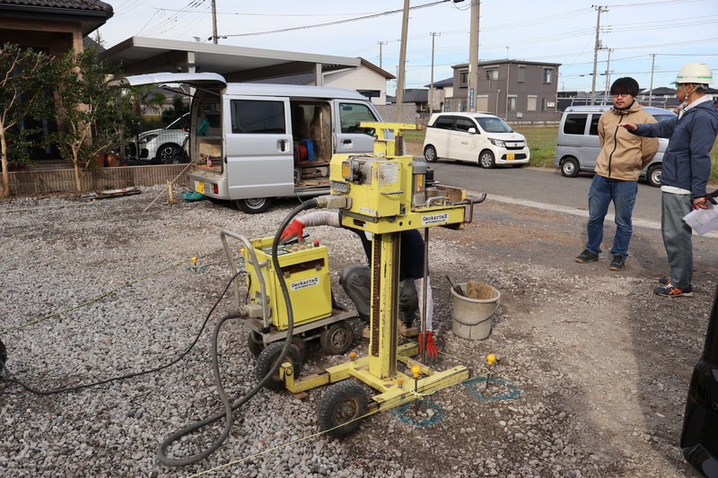 目に見えない地中の状況を調べることで、安全で長持ちする住まいの基礎が整います。どれだけ頑丈なお家を建てても、そのお家が建っている地面が柔らかいと意味がありません。今回も、地盤調査は伊田テクノスさんにご協力いただいています。