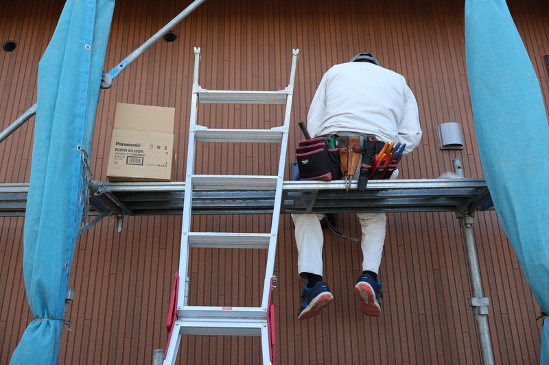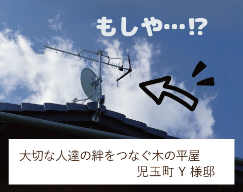 本日は児玉町のY様邸です。現場に着き、カメラレンズ越しに流れる雲を追っていると、ふとフレームインしてきたのは屋根に付いたアンテナでした。おやや、これはもしかして!と思い急ぎ足でY様邸の裏に向かうと、やはり居ました‼F島電気のF島さん(≧◇≦)♪