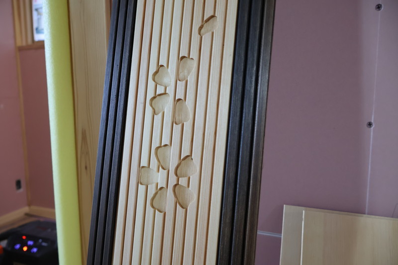 こちらの壁にも腰壁が取り付けられるんですね(*´▽`*)ちなみに現在のピンクの壁はヨシケン標準仕様の「ホルムアルデヒト吸収分解ボード」です✨