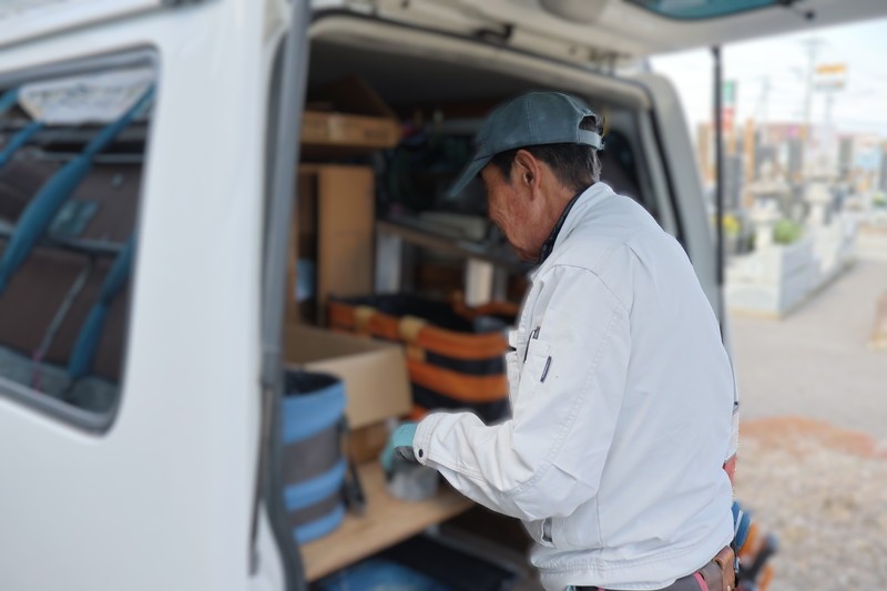 大工さん以上に腰から工具をぶら下げています。工具の年季も入ってます。