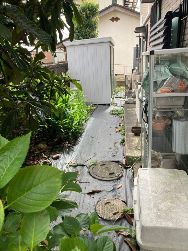 外壁工事となると、足場を設置せねばならないので、外壁や周辺にある植物は取りました。