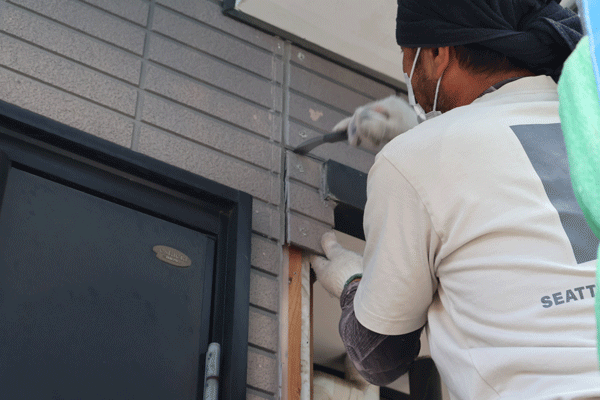 他に、外壁のまわりには窓枠や扉、電気の配線、室外機など、意外とたくさんの設備があります。張り替え工事では、これらを傷つけないように慎重に作業を進める必要があります。そしてそれは外壁を外す時だけでなく、新しく張り替える時も…