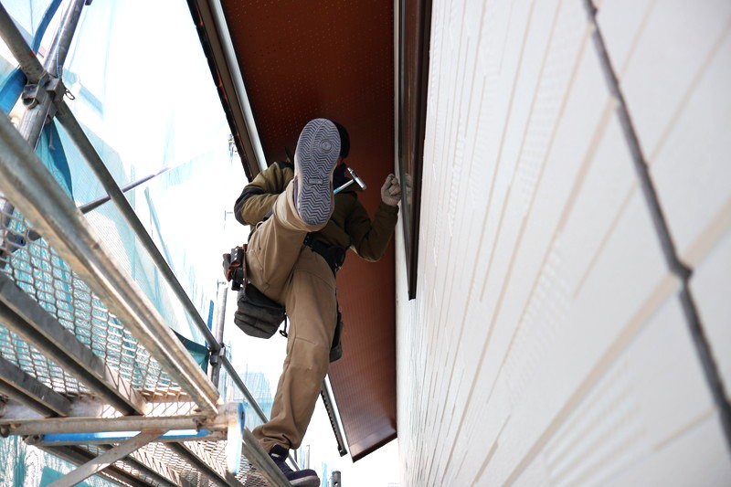 外壁材はピッタリと合わさるように、現場で一枚一枚を丁寧に加工しながら貼り付けられています。その姿は、まさに職人そのもの。細かな調整を重ねながら、迷いのない手つきで仕上げていく様子を見ていると、やっぱり“かっこいい”という言葉が自然と出てきます✨こうして形になっていく過程を間近で見ると、家づくりは人の技と心で支えられているんのだと、改めて実感します。
