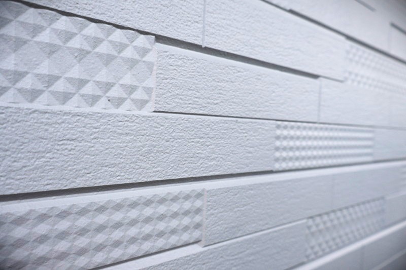 幾何学模様は、自然界にも見られる対称性や規則性をもとにしたデザインで、その整ったリズムが人に心地よさを与えると言われています。そして、この外壁と木の家が組み合わさることで、モダンな印象と木の温もりがほどよく調和し、上品でやわらかな雰囲気が生まれていました。