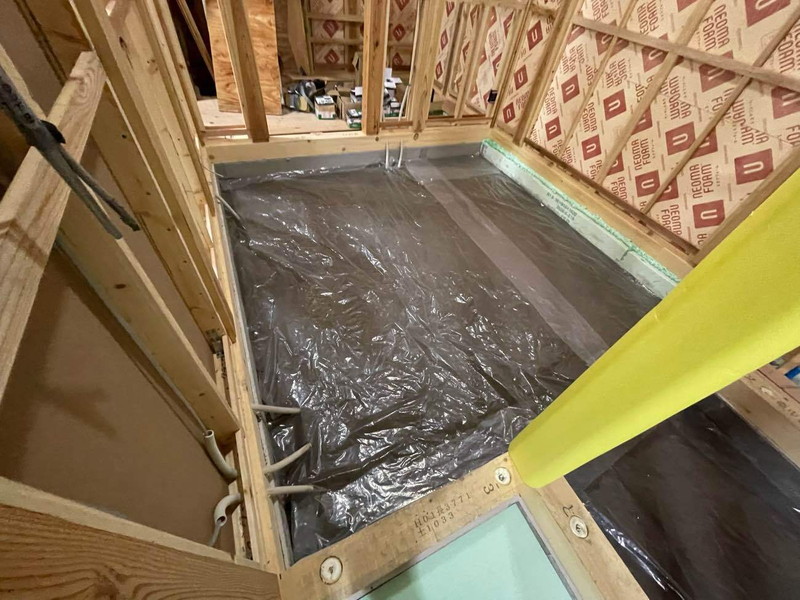 これは後の床暖房配管を敷設する際に「どの方向へ流れ、どこで戻るのか」を示す大切な目印です。配管は一定方向で整然と敷く必要があるため、あらかじめルートを示しておくことで、無理な曲げや重なりを防ぎ、施工精度を高めます。