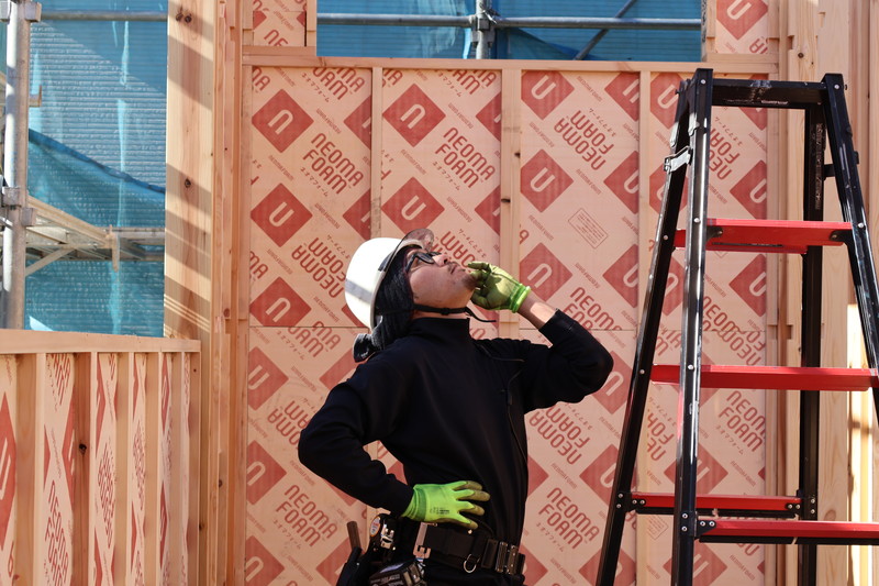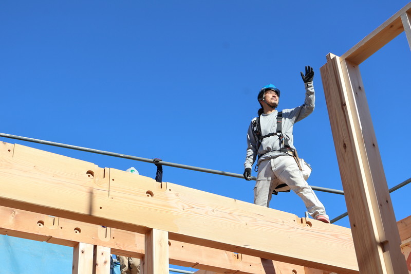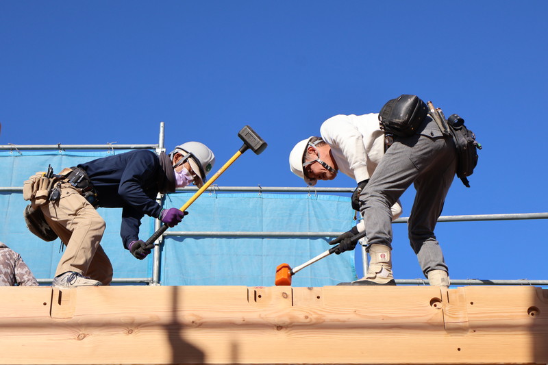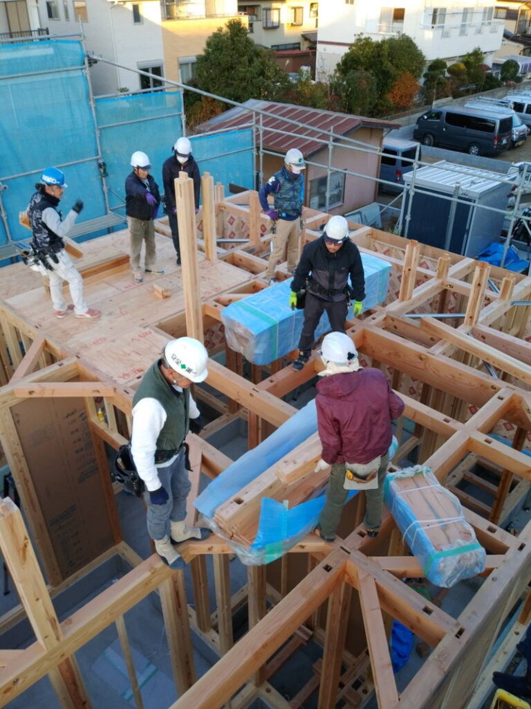 ところで一番最初の画像には、実は職人の影が映っていました!見つけられた方はきっと良いことがあるかもしれません✨建て方はまだまだ続きます!変わらず安全第一で頑張りましょう( `ー´)ノ ウォー